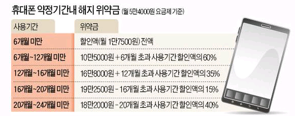 하지만 새 위약금 제도가 도입되면 사용기간에 따라 할인액 일부를 통신사에 돌려주어야 한다.