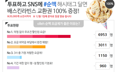 일반 | 배스킨라빈스 아이스크림 100프로 받을 수 있는 올레 순액요금제 이벤트
