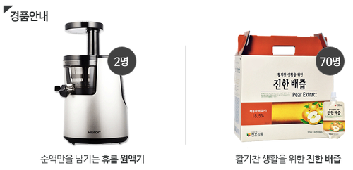 추첨을 통해서 휴롬원액기 또는 진한배즙을 받을 수 있어요.